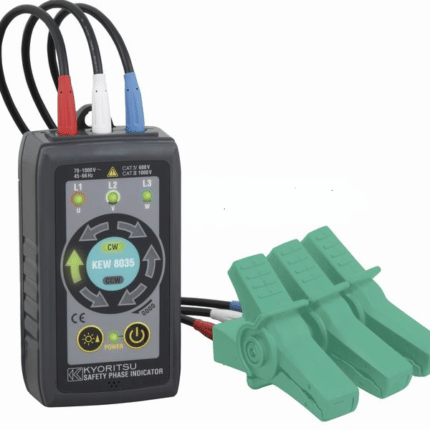 Điện áp hoạt động: 110 – 600V AC. Cầu chì: 0.5A/600V (F). Đo liên tục và thời gian giới hạn: >500V, 5′ Tần số phản hồi: 50Hz/60Hz. Khả năng chịu điện áp: 5550V AC trong 1 phút. Kích thước: 106(L) × 75(W) × 40(D)mm Nặng: 350g approx. Dây đo: 1.5m (R:red S:white T:blue) Phụ kiện: Cáp, HDSD.